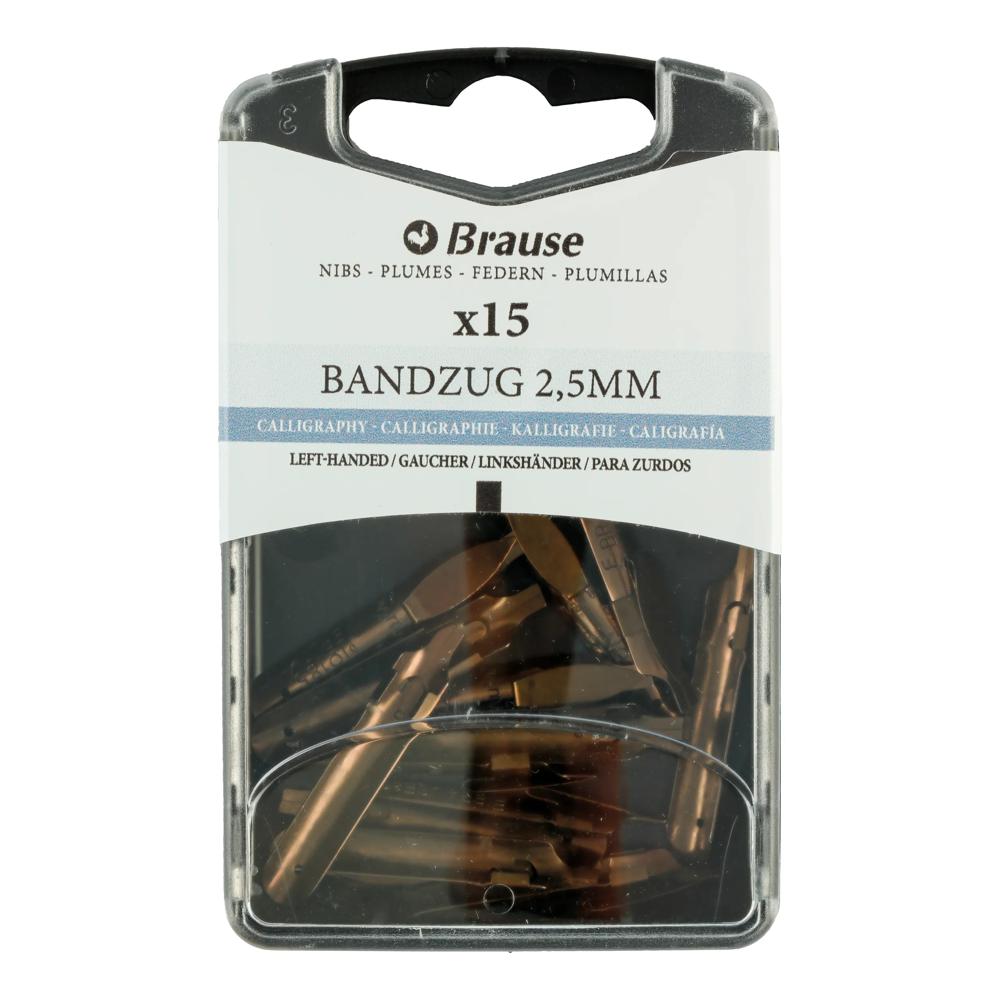 Plume Bandzug pour gauchers à palette et réservoir amovible, idéale pour réaliser de la calligraphie latine (Onciale, Caroline, Chancelière, Ronde). L'acuité des angles de ces plumes donne une grande précision à leurs déliés et donne des lettres gothique incomparables. Brause est le spécialiste depuis 1850 des plumes de calligraphie, de dessin et d'écriture. Fabrication allemande.