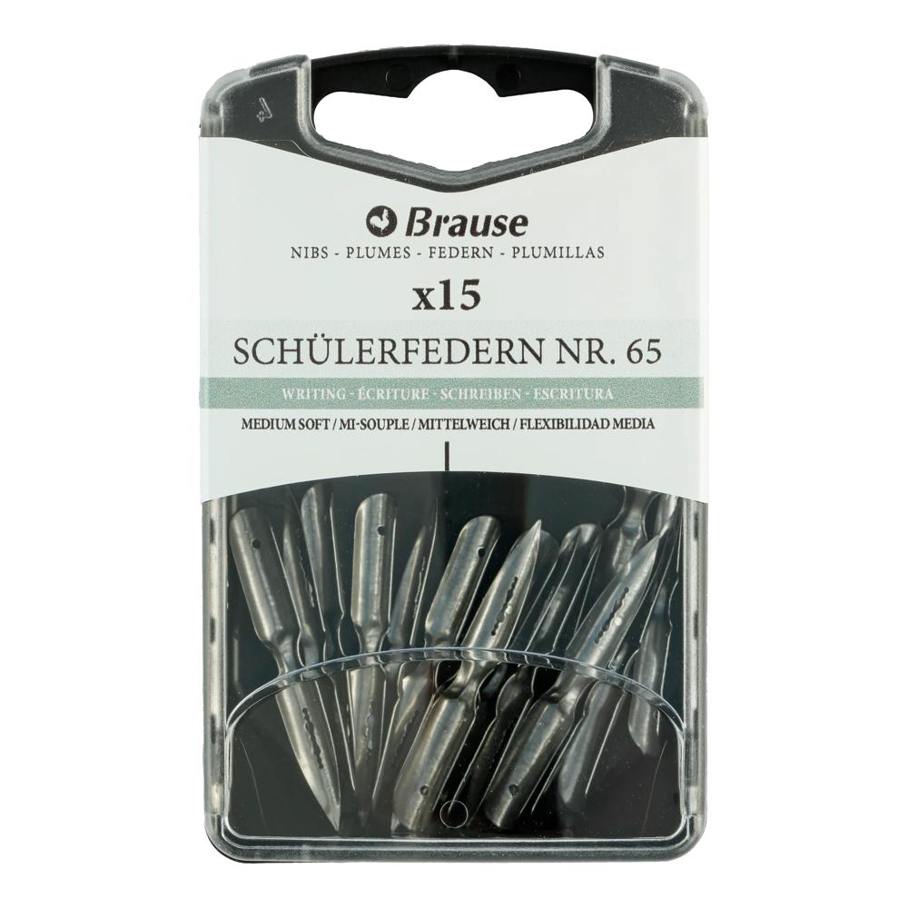 Plume fine assez dure, pour l'écriture, le dessin et la calligraphie. Cette plume fut utilisée par des générations d'écoliers jusque dans les années 1960. Brause est le spécialiste depuis 1850 des plumes de calligraphie, de dessin et d'écriture. Fabrication allemande.