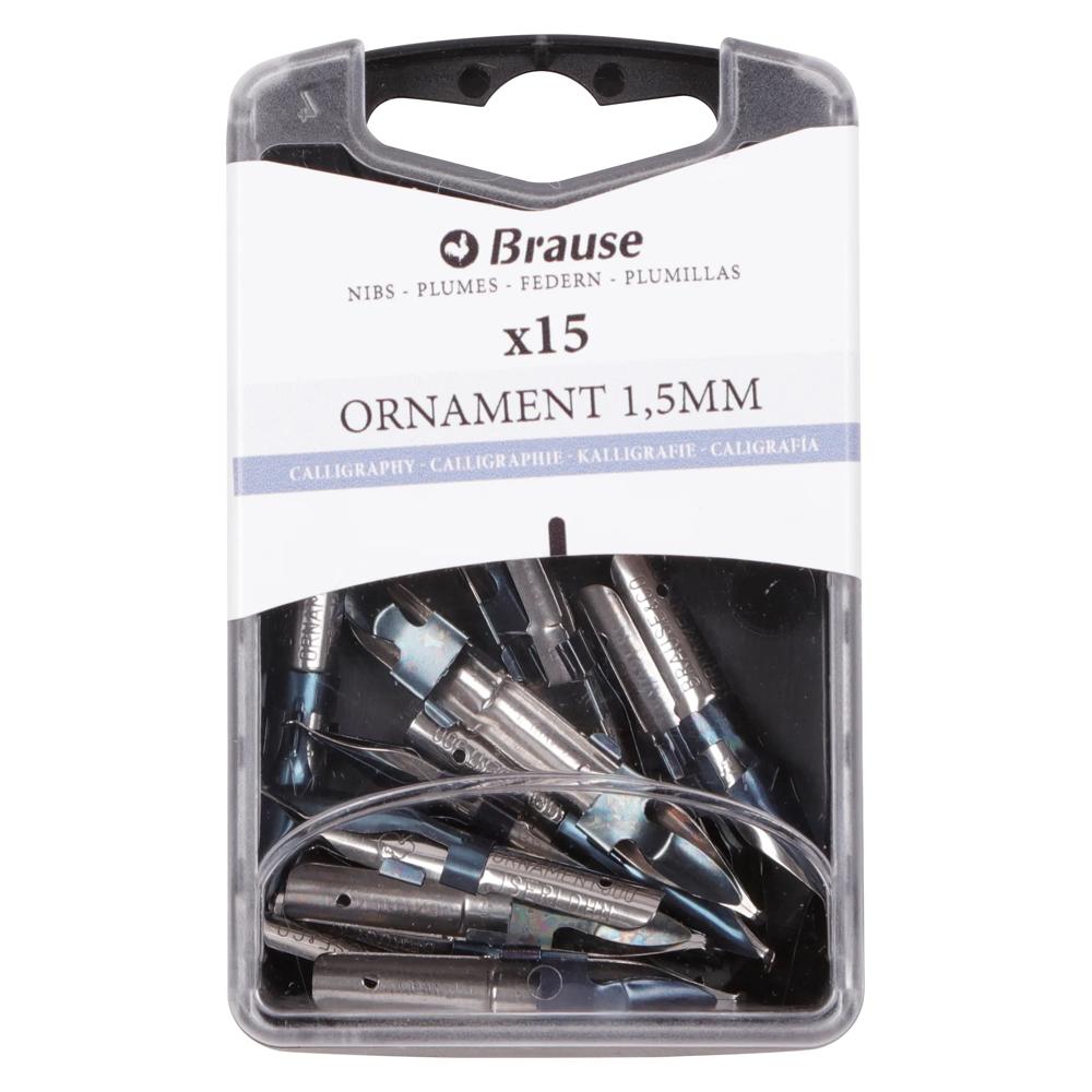 Plume Ornament à palette et réservoir, surtout utilisée pour le titrage (tracés linéaires) et l'ornementation. Brause est le spécialiste depuis 1850 des plumes de calligraphie, de dessin et d'écriture. Fabrication allemande.