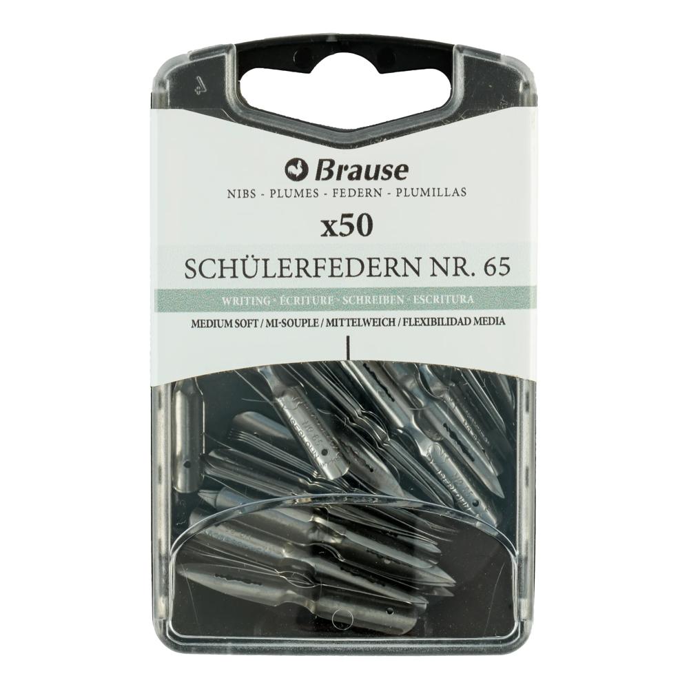 Plume fine assez dure, pour l'écriture, le dessin et la calligraphie. Cette plume fut utilisée par des générations d'écoliers jusque dans les années 1960. Brause est le spécialiste depuis 1850 des plumes de calligraphie, de dessin et d'écriture. Fabrication allemande.