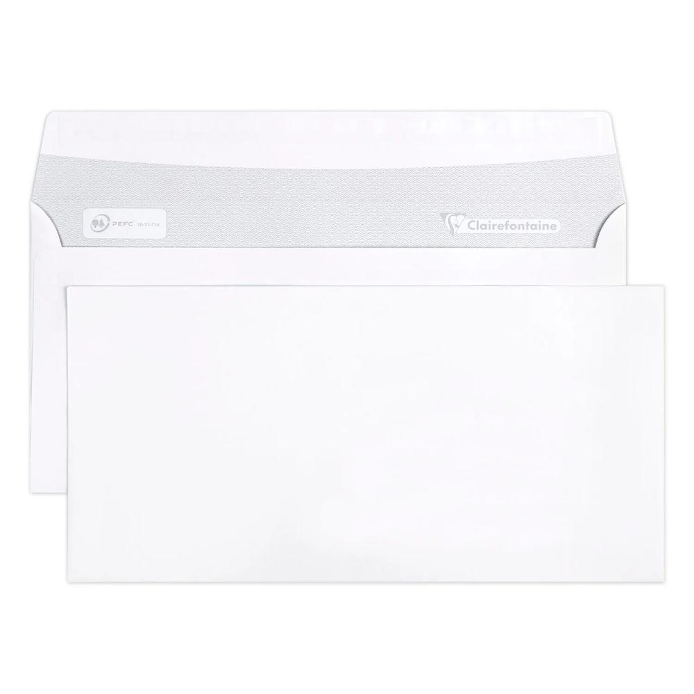 FORMAT : DL-110x220mm. Il peut contenir une feuille A4 (21x29,7 cm) pliée en 3. CARACTERISTIQUES : enveloppe sans fenêtre. Son fond est imprimé en gris, pour assurer la confidentialité de vos courriers. FERMETURE : Auto-adhésive, la colle est protégée par une bande siliconée, elle garantit une fermeture efficace et durable. CONDITIONNEMENT : En vrac par 500 dans une boite à charnière, elle facilite l'ouverture de la boite. Adaptée aux envois en nombre, mailing, publipostage .. PAPIER CLAIREFONTAINE 90g/m2 : Un touché supérieur et la garantie d'une grande blancheur. Certifié PEFC pour garantir une gestion durable des forêts.Fabriqué en France dans notre usine au coeur des Vosges.