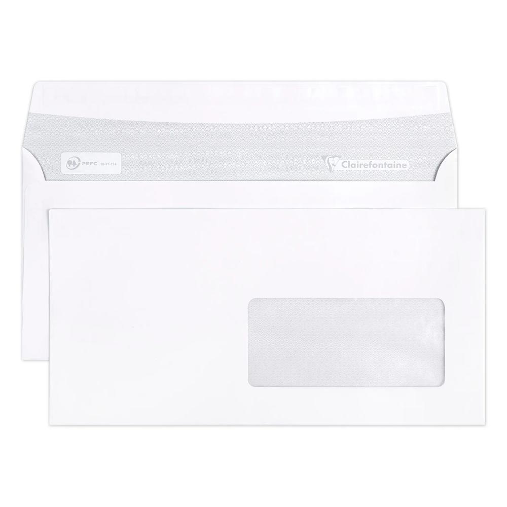 FORMAT : DL-110x220mm. Il peut contenir une feuille A4 (21x29,7 cm) pliée en 3. CARACTERISTIQUES : enveloppe avec fenêtre Papier Cristal dimension 45x100 (position 20/20). Son fond est imprimé en gris, pour assurer la confidentialité de vos courriers. FERMETURE : Auto-adhésive, la colle est protégée par une bande siliconée, elle garantit une fermeture efficace et durable. CONDITIONNEMENT : En vrac par 500 dans une boite à charnière, elle facilite l'ouverture de la boite. Adaptée aux envois en nombre, mailing, publipostage .. PAPIER CLAIREFONTAINE 90g/m2 : Un touché supérieur et la garantie d'une grande blancheur. Certifié FSC pour garantir une gestion durable des forêts. Fabriqué en France dans notre usine au coeur des Vosges.