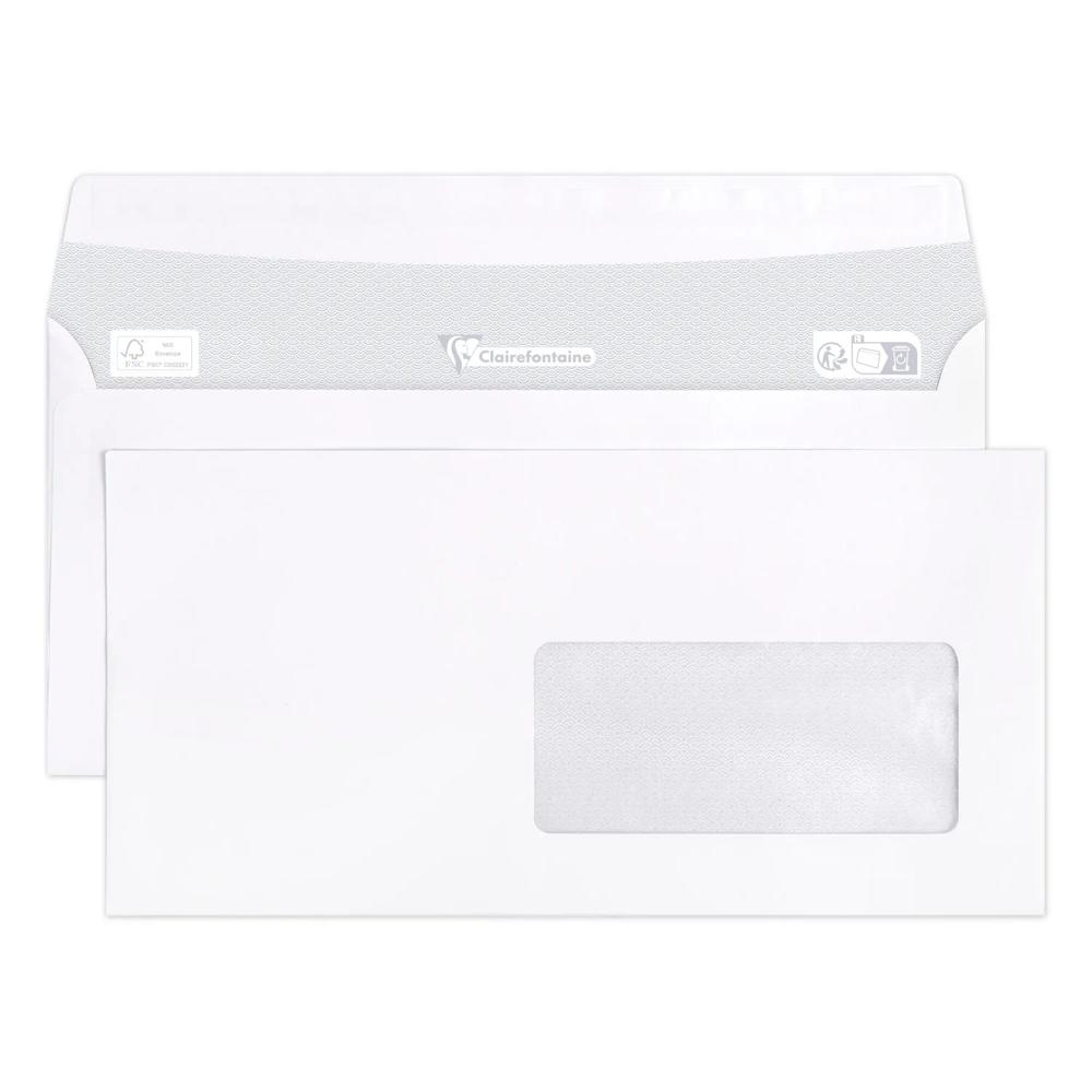 FORMAT : DL-110x220mm. Il peut contenir une feuille A4 (21x29,7 cm) pliée en 3. CARACTERISTIQUES : enveloppe avec fenêtre PET (spéciale impression) dimension 45x100 (position 20/20). Elle résiste à la chaleur d'une imprimante laser. Son fond est imprimé en gris, pour assurer la confidentialité de vos courriers. FERMETURE : Auto-adhésive, la colle est protégée par une bande siliconée, elle garantit une fermeture efficace et durable. CONDITIONNEMENT : En vrac par 500 dans une boite à charnière, elle facilite l'ouverture de la boite. Adaptée aux envois en nombre, mailing, publipostage .. PAPIER CLAIREFONTAINE 90g/m2 : Un touché supérieur et la garantie d'une grande blancheur. Certifié FSC pour garantir une gestion durable des forêts. Fabriqué en France dans notre usine au coeur des Vosges.
