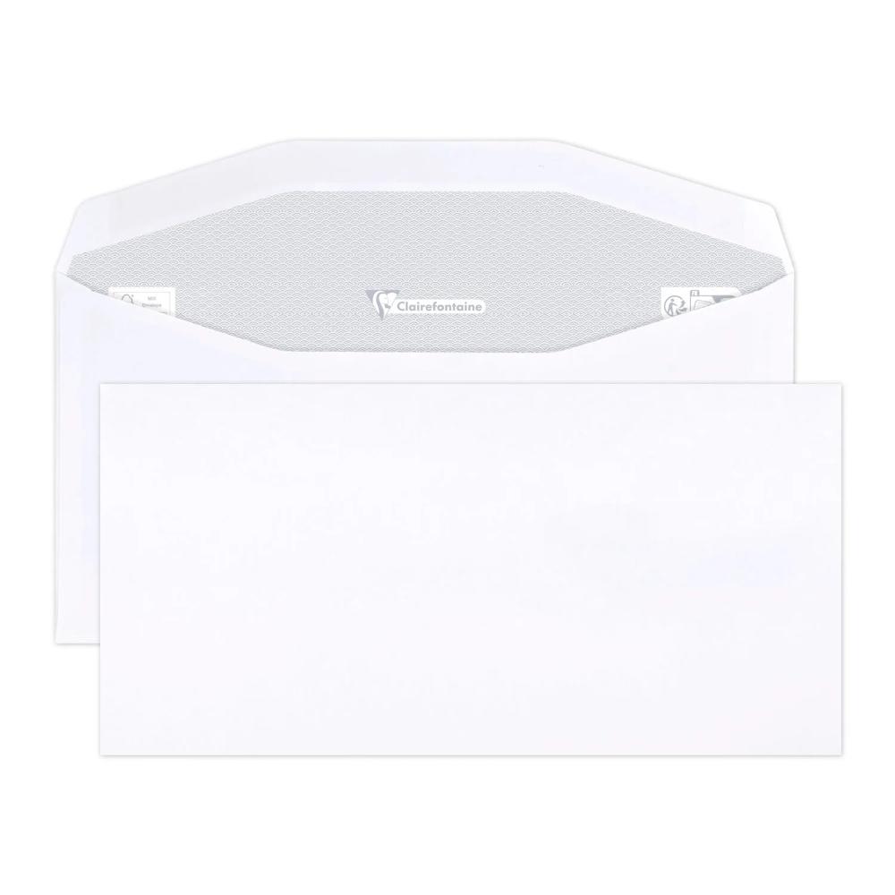 FORMAT : C6/5-114x229mm. Il peut contenir une feuille A4 (21x29,7cm) pliée en 3. CARACTERISTIQUES : enveloppe sans fenêtre. Son fond est imprimé en gris, pour assurer la confidentialité de vos courriers. FERMETURE : Gommée, enveloppe mécanisable pour mise sous pli automatique CONDITIONNEMENT : En vrac par 500 dans une boite à charnière, elle facilite l'ouverture de la boite. Adaptée aux envois en nombre, mailing, publipostage .. PAPIER CLAIREFONTAINE 80g/m2 : La garantie d'une grande blancheur. Certifié PEFC pour garantir une gestion durable des forêts. Fabriqué en France dans notre usine au coeur des Vosges.