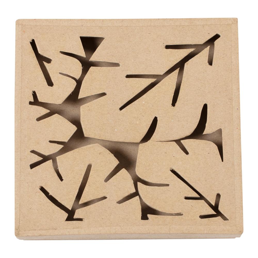 CARACTERISTIQUE : Cette boîte carrée est fabriquée à la main à base papier mâché de couleur brun, chaque support est donc unique. Dimensions : 17x17x3 cm.