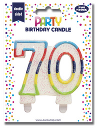 Description détailléeBougie blanche à effet scintillant et bord coloré, double face, pied en plastique, sur carte blister dimensions de la carte blister: (L)110 x (P)15 x (H)149 mm