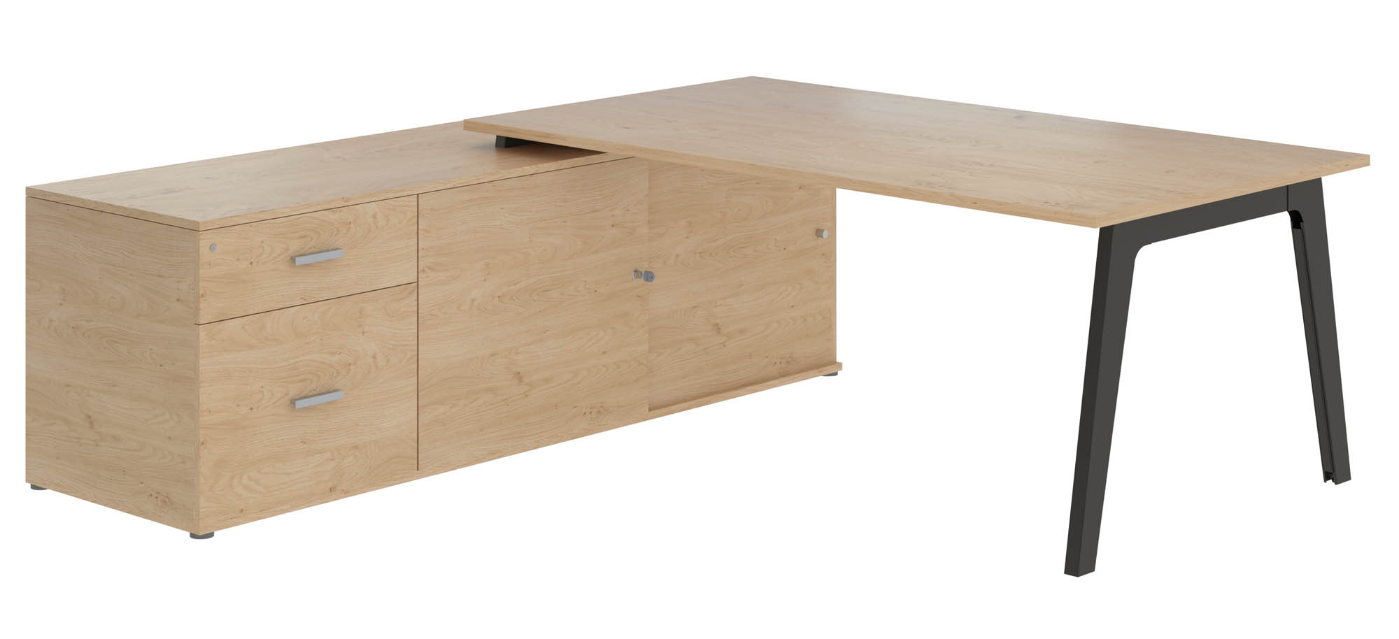 Caisson intégré, 2 tiroirs dont 1 pour dossiers suspendus.
