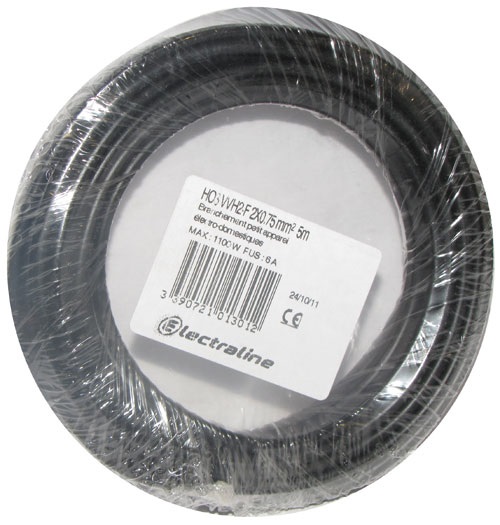 Le câble domestique H03VVH2F 2x0.75mm² longueur 10 m couronne noir de chez Electraline est conçu pour l'installation et le raccordement fixe d'équipements électriques, appareils ménagers et de dispositifs similaires.