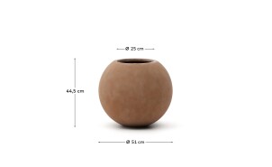Avec sa forme sphérique et sa teinte terracota, le cache-pot Solna ajoute de la chaleur et un équilibre visuel à tout espace. Fabriqué en polyciment, il se démarque par sa résistance et sa polyvalence, étant idéal pour l’intérieur et l’extérieur. Parfait pour mettre en valeur vos plantes, il peut aussi être utilisé comme élément décoratif pour apporter une touche organique à votre espace.- Cache-pot en polyciment.