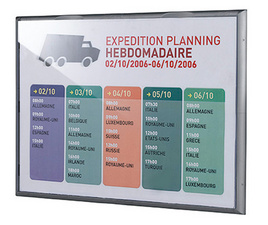 Description détailléeCadre en polystyrène, vitre en polystyrène cristal, grande encoche de préhension, juxtaposable verticalement et horizontalement, avec pince clips
