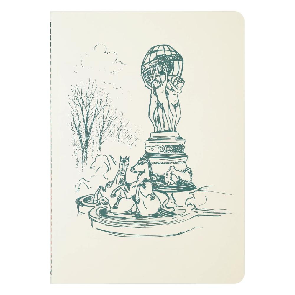 Cahier A5 - 14,8 X 21 cm, piqué cousu fil, 32 pages lignées, papier 120g ivoire. Fontaine en bronze située dans le 6ième arrondissement, elle célèbre les quatre continents alors connus : L'Europe, l'Asie, l'Afrique et l'Amérique (l'Océanie était encore en cours d'exploration à cette époque). Les cahiers de Paris sont assortis à la gamme des encres d'écriture Les couleurs de Paris.