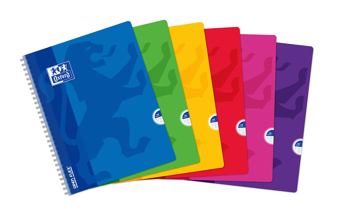 OPTIMISATION : La couverture en polypro translucide enveloppe et protège les spirales : fini la couverture et les pages qui se détachent ! Elle résiste aux rayures, aux éclaboussures et aux déchirures. Plus besoin de protège cahier. TECHNOLOGIE : OpenFlex, c'est un brevet de fabrication exclusif. Le dos des couvertures en polypropylène reste souple et confortable et offre ainsi une ouverture optimale à 180°. PAGE DE GARDE : Une page de garde blanche est située derrière la couverture translucide et cache la réglure Seyès. Elle permet aussi d'identifier son cahier en écrivant la matière. Ce produit est disponible sous les versions de couleurs suivantes : Assorti : Bleu ; Vert ; Rouge ; Jaune ; Rose ; Violet