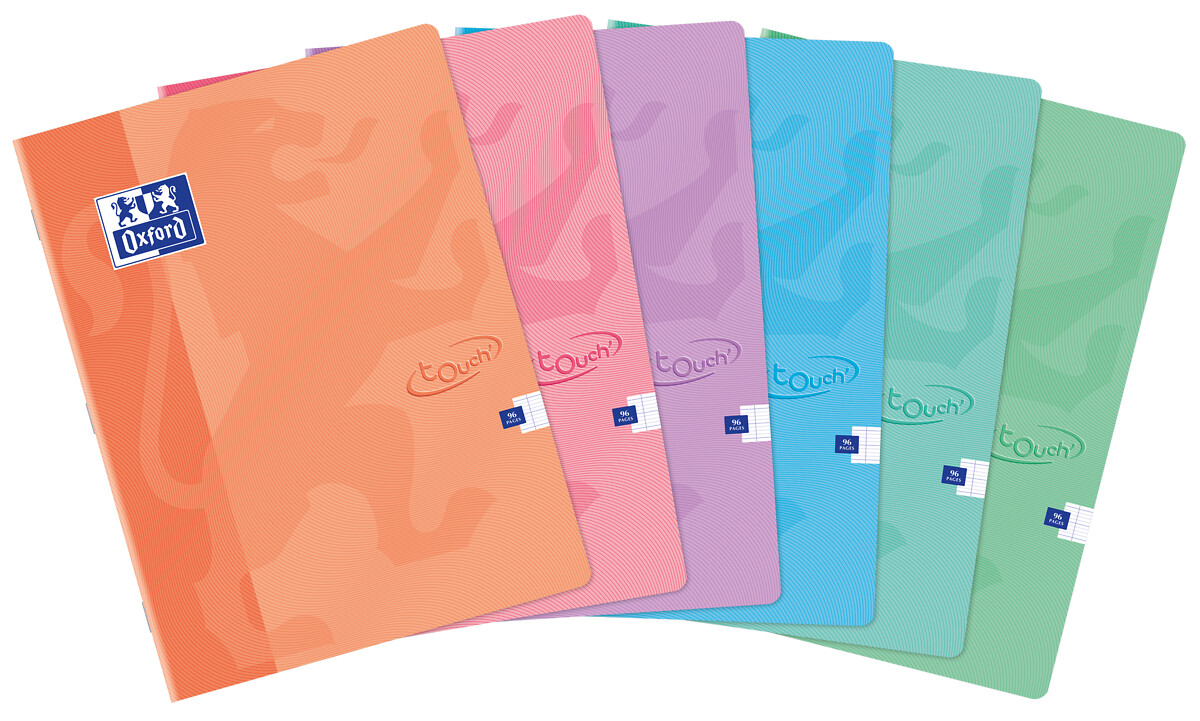 "COUVERTURE : La couverture de ce grand cahier Touch' est faite en carte, recouverte d'un pelliculage ultra doux. Cela procure un toucher exceptionnel soyeux et agréable. DESIGN : Le décor du cahier Touch' a spécialement été imaginé pour que son univers graphique évoque la douceur du toucher. COULEURS : Les couleurs sont ultra tendance et sont inspirées de l'univers pastel, pour des tons chauds et très doux. Ce produit est disponible sous les versions de couleurs suivantes : Assorti : Pêche ; Rose Dragée ; Lilas ; Aigue-Marine ; Turquoise Clair ; Menthe À L'Eau "