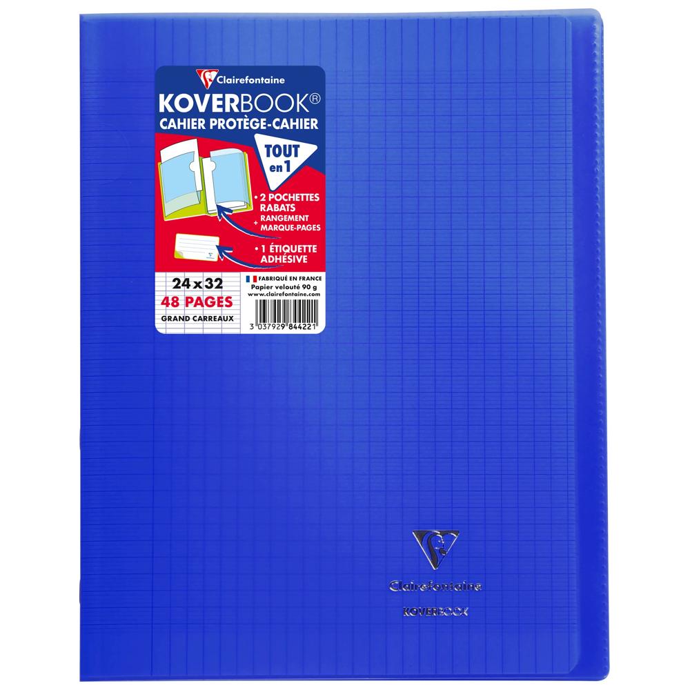 Koverbook l'original : cahier & protège-cahier, tout-en-un ! Couverture solide et protectrice en polypropylène transparent avec deux grands rabats à pochette pour marquer les pages et ranger les documents utiles ! Fourni avec une étiquette adhésive pour personnaliser le cahier (nom, prénom, matière, classe...). Papier Clairefontaine Vélin Velouté 90 g, pour une sensation de glisse unique. Certifié PEFC, pour la gestion durable des forêts. Fabriqué en France.
