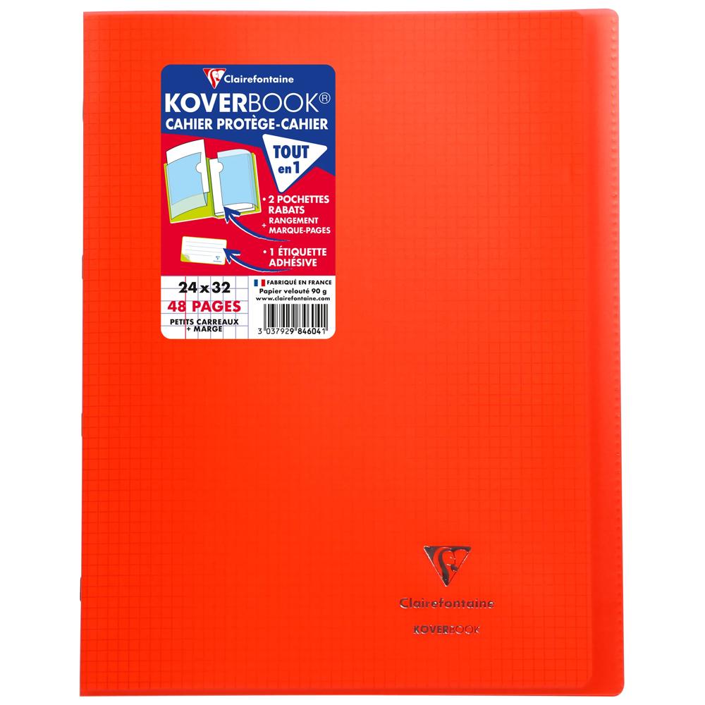 Koverbook l'original : cahier & protège-cahier, tout-en-un ! Couverture solide et protectrice en polypropylène transparent avec deux grands rabats à pochette pour marquer les pages et ranger les documents utiles ! Fourni avec une étiquette adhésive pour personnaliser le cahier (nom, prénom, matière, classe...). Papier Clairefontaine Vélin Velouté 90 g, pour une sensation de glisse unique. Certifié PEFC, pour la gestion durable des forêts. Fabriqué en France.