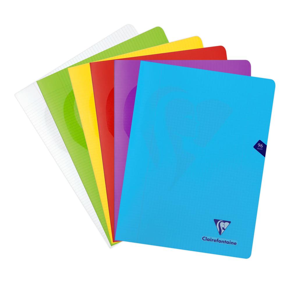 Gamme Clairefontaine Mimesys : couverture souple en plastique transparent, imperméable, solide et protectrice, déclinée dans un large choix de couleurs. Plus besoin de protège-cahier ! Couverture souple et résistante en polypropylène transparent, plus besoin de protège-cahier ! 6 couleurs disponibles : bleu, rouge, jaune, vert, violet et incolore - Livraison aléatoire. Papier Clairefontaine Vélin Velouté 90g, pour une sensation de glisse unique. Certifié PEFC, pour la gestion durable des forêts. Fabriqué en France.