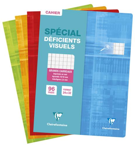 Lignage spécial déficients visuels : carreaux agrandis, imprimés en noir avec les lignes primaires et la marge plus marquées que les lignes secondaires.