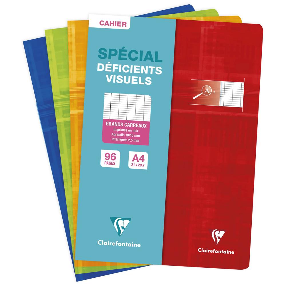 Dès 1950, Clairefontaine entreprend de proposer des cahiers tranchant par la qualité de leur papier, la gaieté et la solidité de leur couverture, sur les piètres articles de l'époque. Clairefontaine révolutionnera alors l'usage des cahiers et appuiera l'engagement de l'entreprise dans une quête permanente d'amélioration de la qualité. Désormais célèbre pour ses cahiers haut de gamme, Clairefontaine fabrique ses produits à base de papier uniquement avec des pâtes à papier provenant à 100% de forêts certifiées pour leur gestion environnementale. Grâce à des produits parfaitement en phase avec les besoins de tout à chacun, Clairefontaine fait partie intégrante de notre quotidien. Lignage spécial déficients visuels : carreaux agrandis, imprimés en noir avec les lignes primaires et la marge plus marquées que les lignes secondaires. Couverture carte pelliculée brillante et imperméable. Papier Clairefontaine Vélin Velouté 90 g, pour une sensation de glisse unique. Certifié PEFC, pour la gestion durable des forêts. Fabriqué en France.