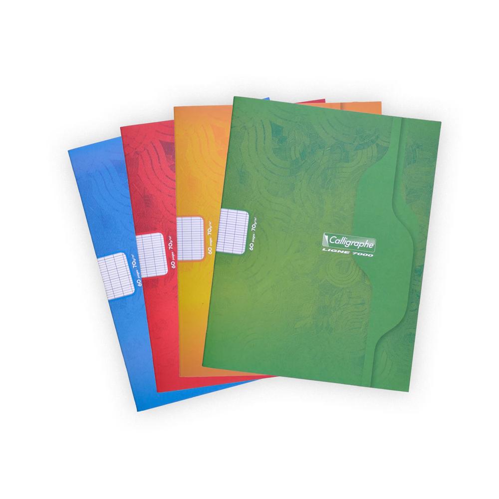 Cahier piqué 7000 17x22 cm 60 pages grands carreaux 70 g - Assortis