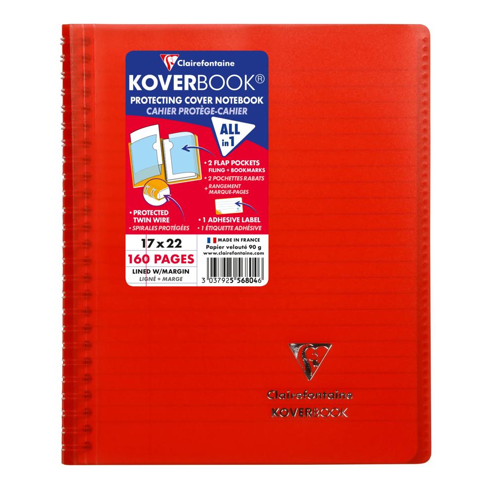 Koverbook l'original : cahier & protège-cahier, tout-en-un ! Reliure intégrale à couverture enveloppante protégeant les spirales tout en permettant une pleine ouverture du cahier à 360°. Fini les feuilles qui s'échappent ! Couverture solide et protectrice en polypropylène transparent avec deux grands rabats à pochette pour marquer les pages et ranger les documents utiles ! Fourni avec une étiquette adhésive pour personnaliser le cahier (nom, prénom, matière, classe...). Papier Clairefontaine Vélin Velouté 90 g, pour une sensation de glisse unique. Certifié PEFC, pour la gestion durable des forêts. Fabriqué en France.