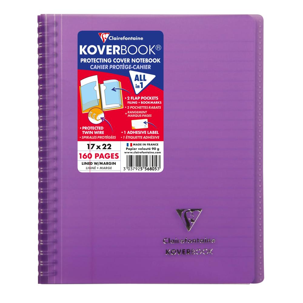 Koverbook l'original : cahier & protège-cahier, tout-en-un ! Reliure intégrale à couverture enveloppante protégeant les spirales tout en permettant une pleine ouverture du cahier à 360°. Fini les feuilles qui s'échappent ! Couverture solide et protectrice en polypropylène transparent avec deux grands rabats à pochette pour marquer les pages et ranger les documents utiles ! Fourni avec une étiquette adhésive pour personnaliser le cahier (nom, prénom, matière, classe...). Papier Clairefontaine Vélin Velouté 90 g, pour une sensation de glisse unique. Certifié PEFC, pour la gestion durable des forêts. Fabriqué en France.