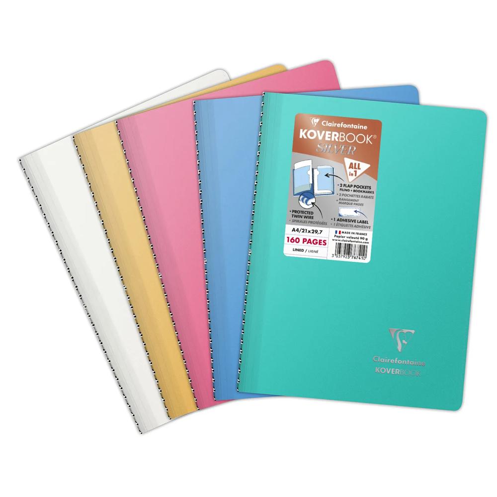 Koverbook Silver, le nouveau cahier aux teintes tendance et élégantes avec des reflets métallisés pour un effet chic garanti ! Reliure intégrale à couverture enveloppante protégeant les spirales tout en permettant une pleine ouverture du cahier à 360°. Fini les feuilles qui s'échappent ! Couverture solide en polypro opaque avec deux grands rabats à pochette pour marquer les pages et ranger les documents utiles ! 5 couleurs métallisés assorties : Turquoise, Bleu, Rose, Or et Blanc. Livraison aléatoire. Fourni avec une étiquette adhésive pour personnaliser le cahier (nom, prénom, matière, classe...). Papier Clairefontaine Vélin Velouté 90 g, pour une sensation de glisse unique. Certifié PEFC, pour la gestion durable des forêts. Fabriqué en France.