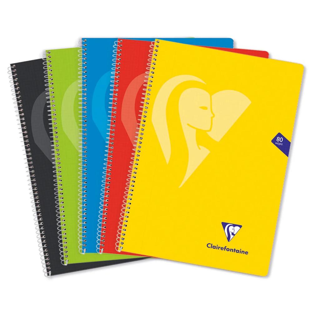 Couverture souple et résistante en polypropylène transparent. 5 couleurs vives assorties : Noir, Vert, Bleu, Rouge et Jaune. Livraison aléatoire. Spirale simple permettant une pleine ouverture, idéal pour l'utilisation recto/verso des feuilles ! Papier Clairefontaine Vélin Velouté 90 g, pour une sensation de glisse unique. Certifié PEFC, pour la gestion durable des forêts. Fabriqué en France.