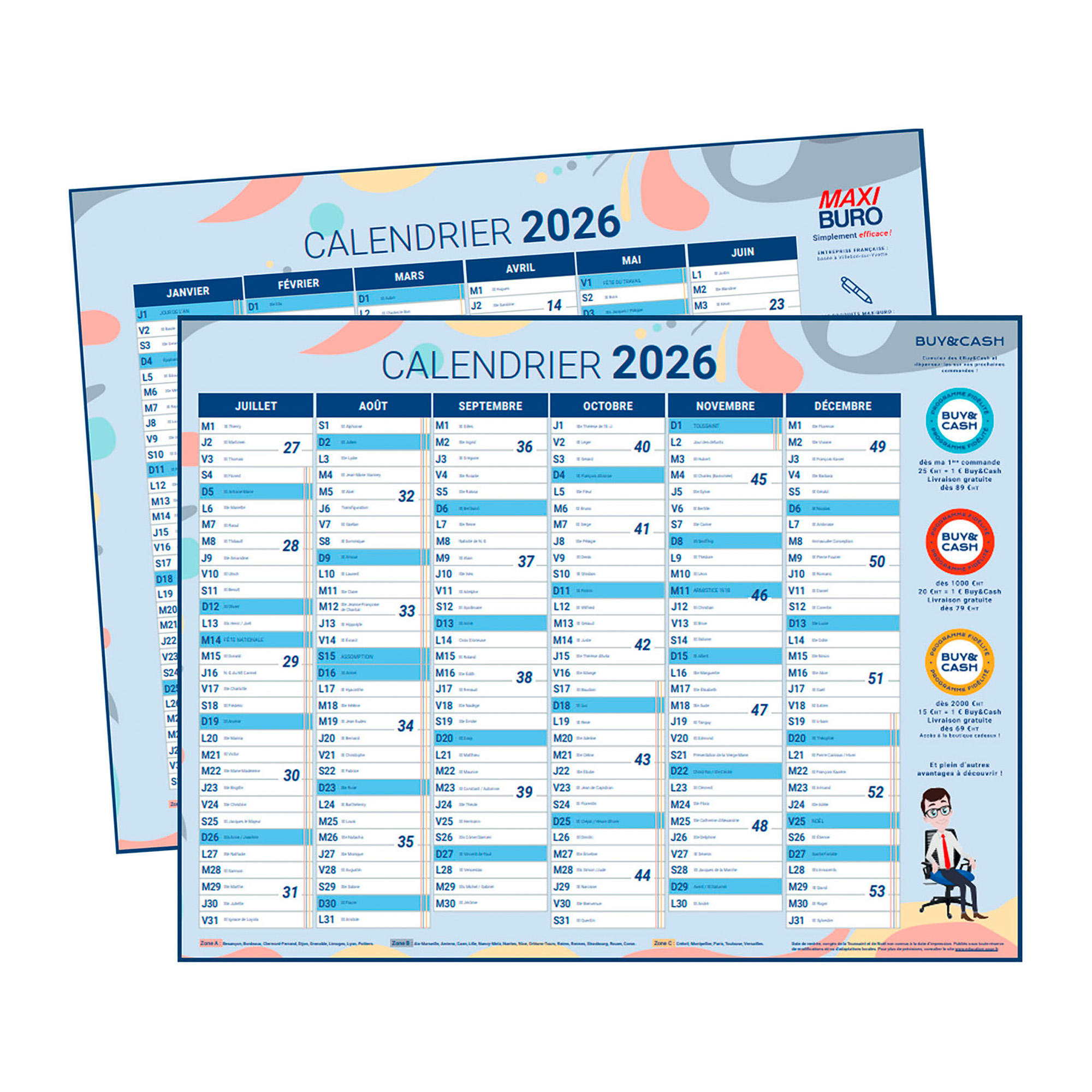 Calendrier classique présentant 6 mois par face.