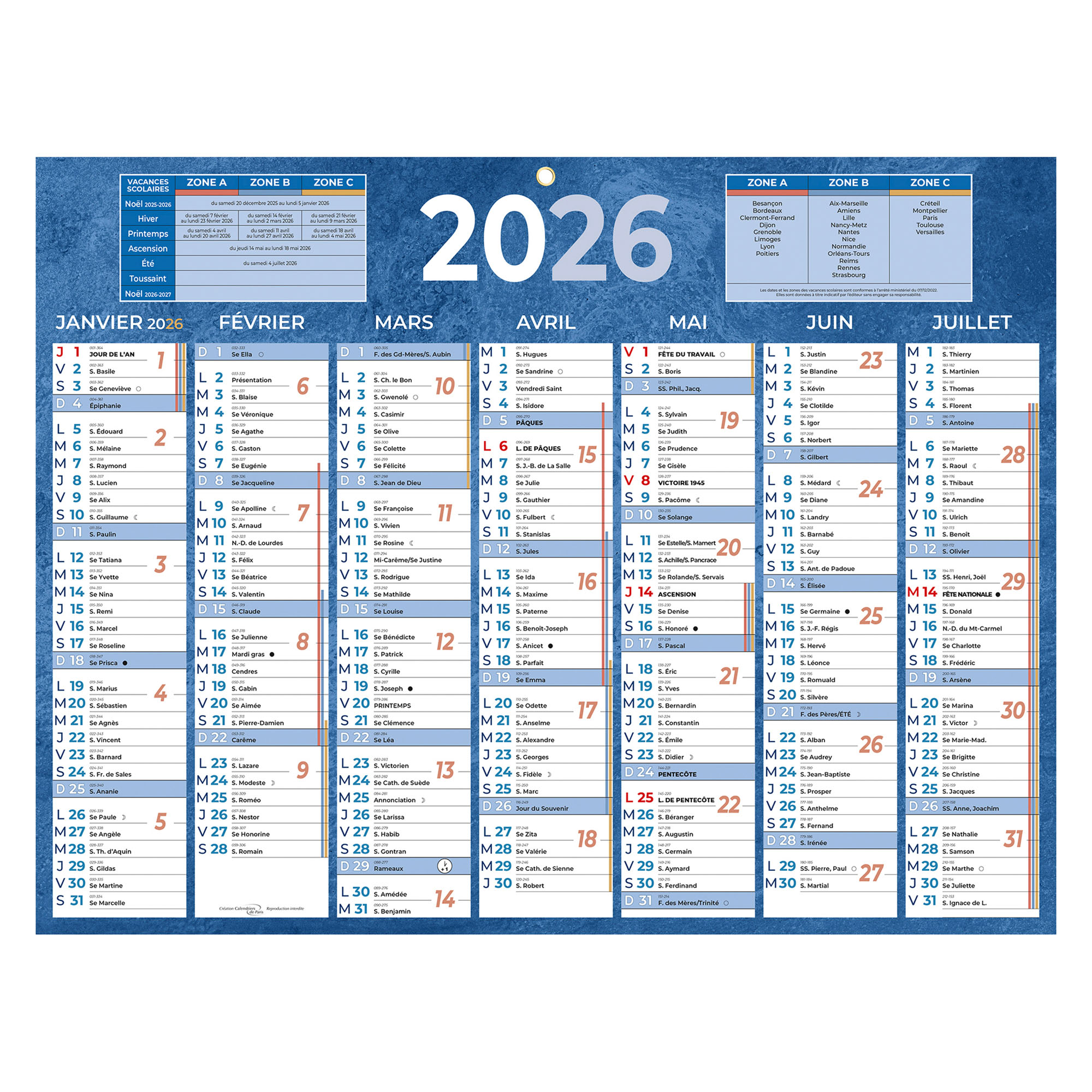 2 tableaux récapitulatifs des périodes de vacances scolaires et de la répartition des zones géographiques A, B et C.