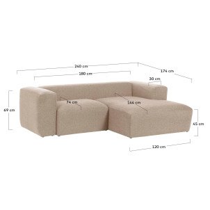 Canapé Blok 2 places méridienne droite beige 240 cm