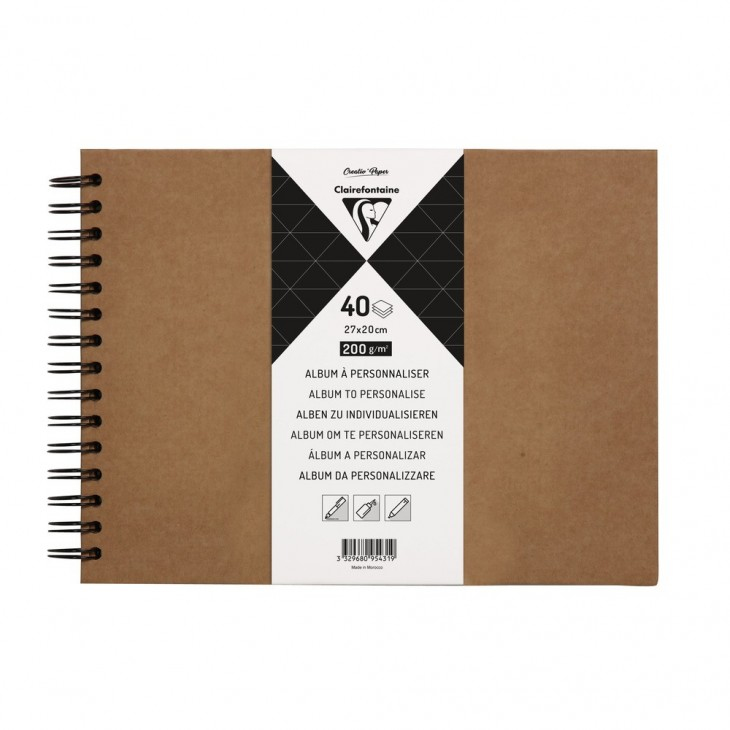 A décorer et à personnaliser selon vos envies, ce carnet recueille notes, croquis, pensées, messages et sert aussi bien de livre d'or que d'album de voyage. Ce carnet au format 27x20cm contient 40 feuilles de papier kraft 200g/m2. Couverture en kraft rembordée rigide et reliure intégrale noire. Elastique noir et logo embossé au dos.