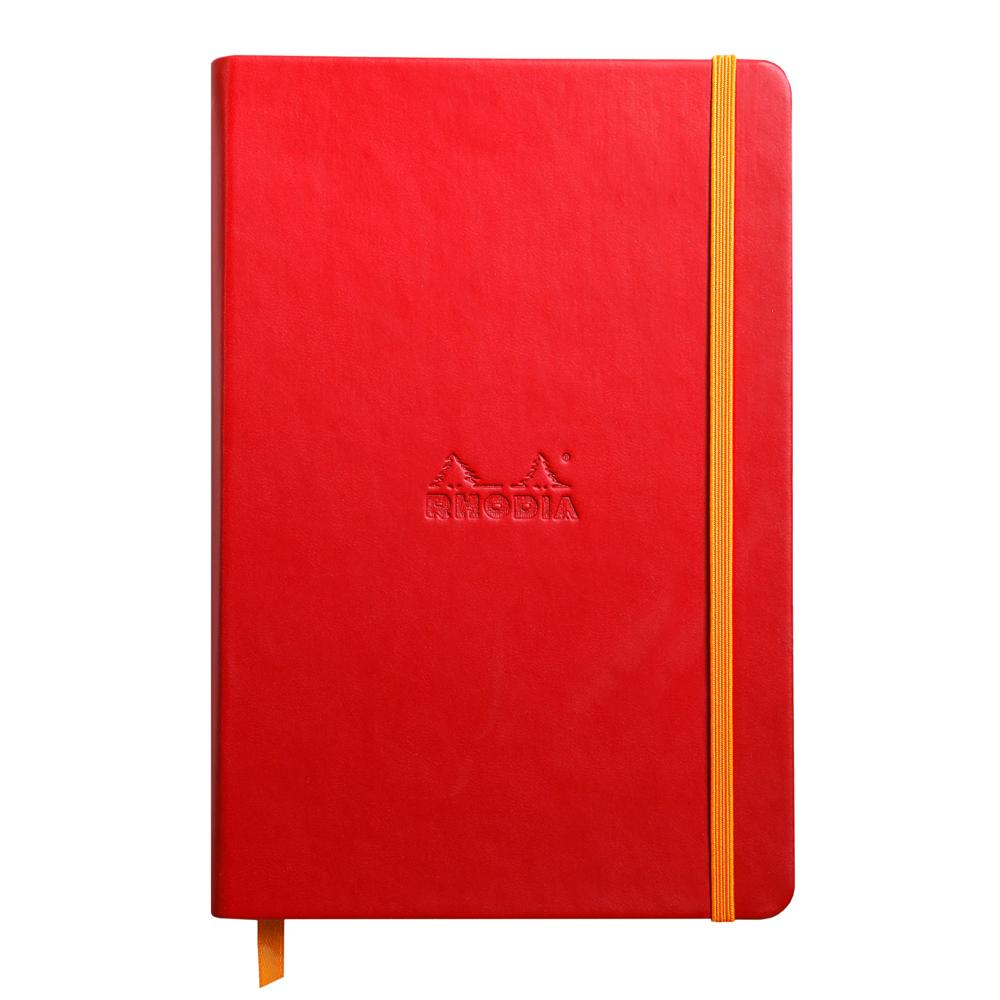 Comment résister au charme de la couverture veloutée et à l'authenticité de la finition cousue main des carnets rigides Rhodiarama ? Couverture en simili cuir italien, logo Rhodia embossé, fermeture élastique orange. Ruban marque-page orange, pochette à soufflet orange. Papier Clairefontaine vélin velouté 90 g ivoire à la douceur inégalée et à l'opacité et la résistance remarquables. Papier certifié PEFC.