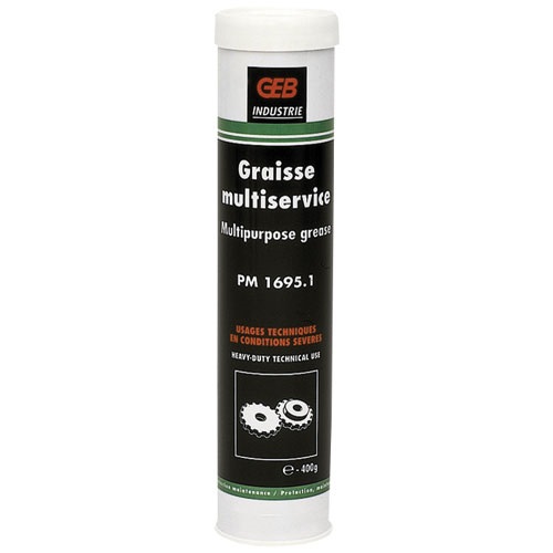 La cartouche graisse multiservice - 400 g de la marque GEB est conçue pour un usage courant. Lubrifriez facilement roulements, paliers et articulations. Caractéristiques de la graisse multiservice en cartouche : Tous usages Forte pression Insoluble à l'eau. Très bonne stabilité au travail Excellente adhérence sur métaux. Contenance : 400 g.