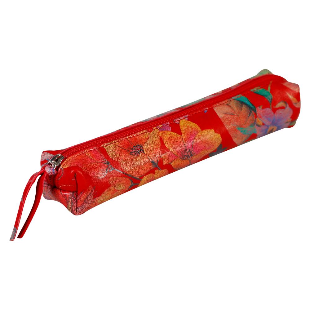Céleste CUIR Trousse SLIM 19,5x2,5x4 cm Jardin rouge