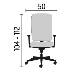 Dimensions d’assise : L 50 x P 48 cm, adaptée à tout type de bureau. Mécanisme synchrone : assise réglable en hauteur de 44 à 52 cm.