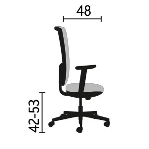 4 coloris au choix : gris, bleu, violet, beige. Dimensions assise : L 48 x P 48 à 53 cm. Hauteur réglable de 42 à 53 cm. Hauteur dossier : 60 cm. Réglable en hauteur par crémaillière. Accoudoirs 3D réglables en hauteur, largeur et orientation.