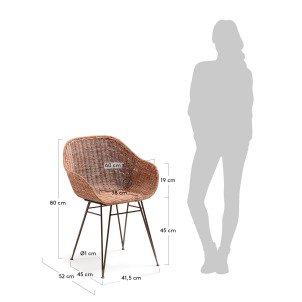 Matières : Assise en rotin naturel tressé à la main. Structure en acier. Piétement incliné acier noir. Les pieds sont dotés de protections.