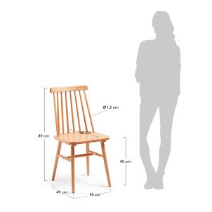 Dimensions globale : L 43 x H 89 x P 49 cm. Dimensions assise : L 43 x P 40 x H 45 cm. Dimensions dossier : H 44 x L 37 cm.