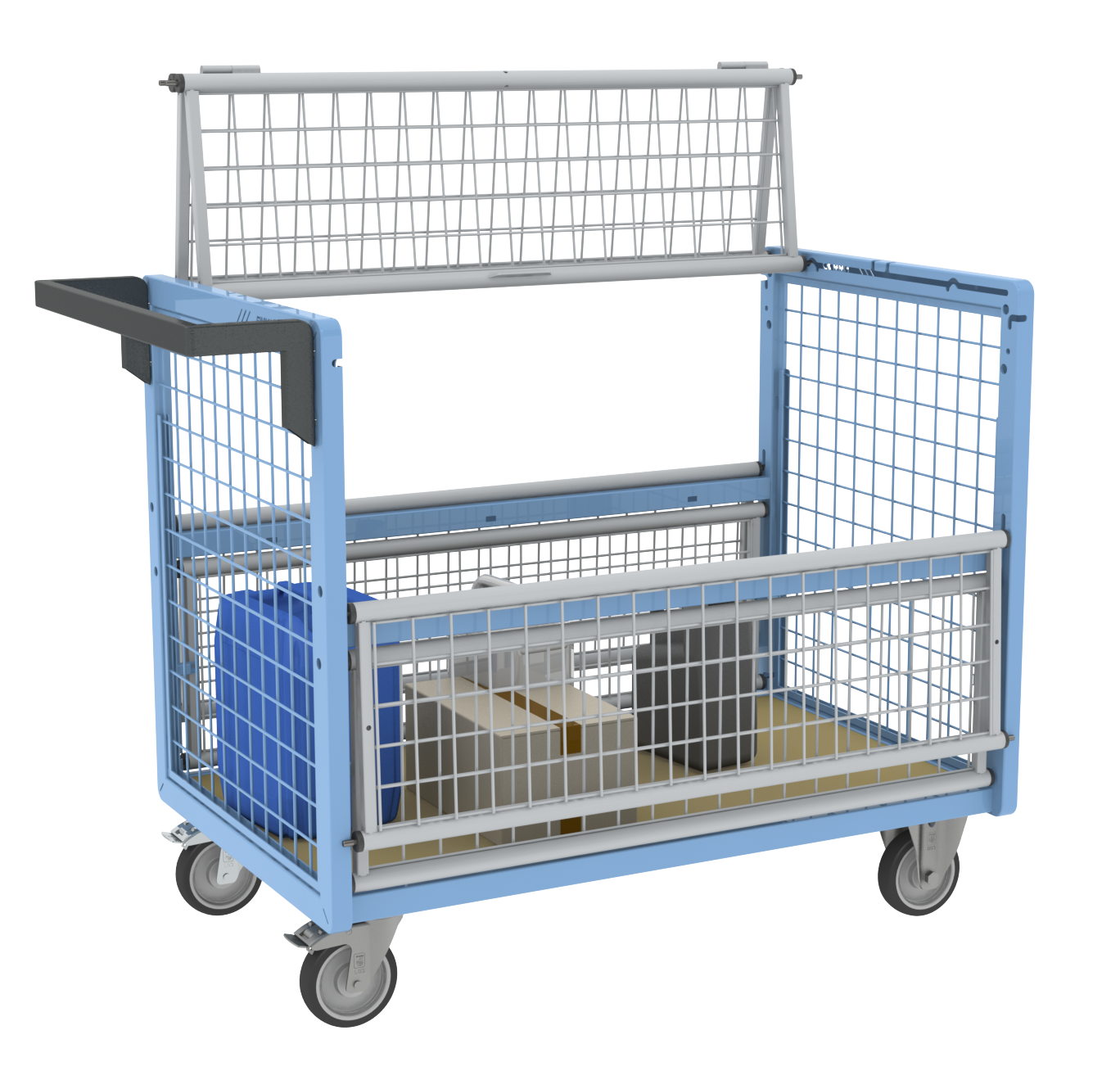 Chariot conteneur grillagé avec toit, 1000 x 600 mm, 250 kg