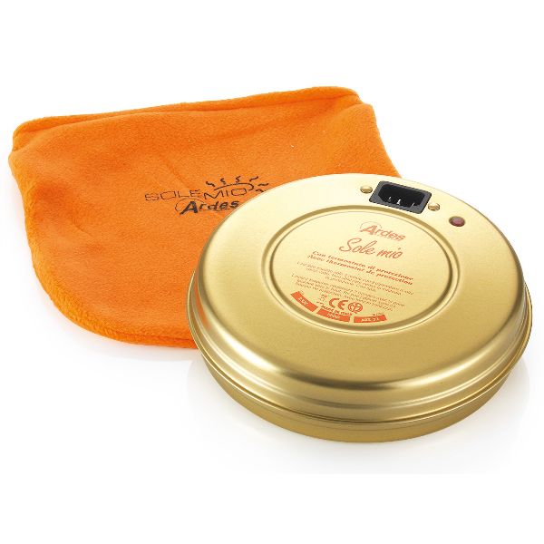 Chaufferette électrique - 3 h de chaleur pour 3 minutes de branchement électrique - Équipée d'une sécurité thermique - Arrêt automatique - Double thermostat - Livrée avec une housse en tissu et un cordon électrique détachable de 75 cm - Témoin lumineux de fonctionnement - Diamètre 19 cm - Puissance 550 W