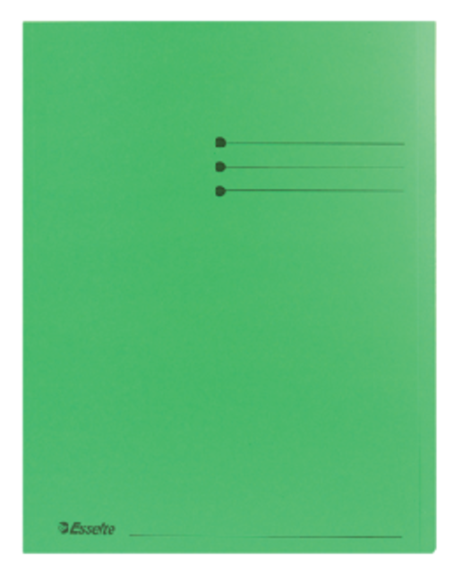 Description détailléeChemise imprimée à bord décalé en carton 180 g/m², format A4. Bord dépassant de 1 cm. Dimensions L 22 x H 31,5. Fabriquée à partir de 100 % de matériaux recyclés. Coloris vert. Paquet de 100 chemises..