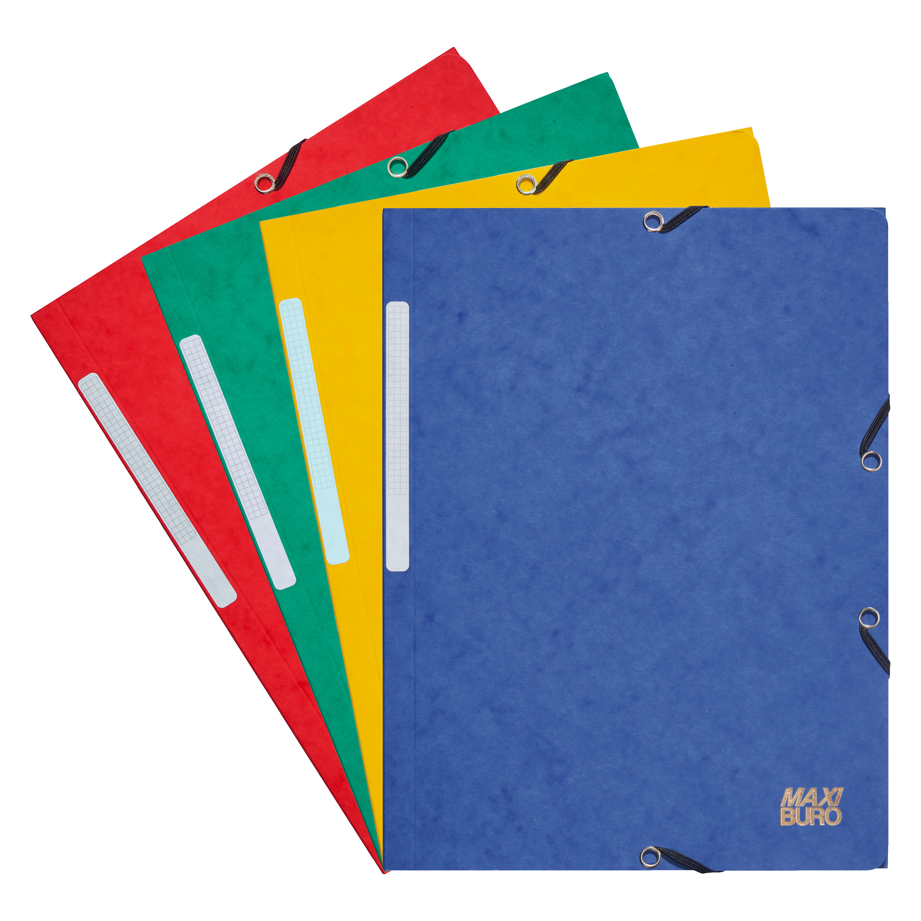 Chemise à élastique 3 rabats résistante. Véritable carte lustrée 350g. Pour vos feuilles jusqu'au format A4. Permet de conserver les documents propres et protégés. Étiquette d'indexage pour identifier le contenu de vos chemises. 4 coloris au choix (bleu, vert, jaune ou rouge) ou assorties.
