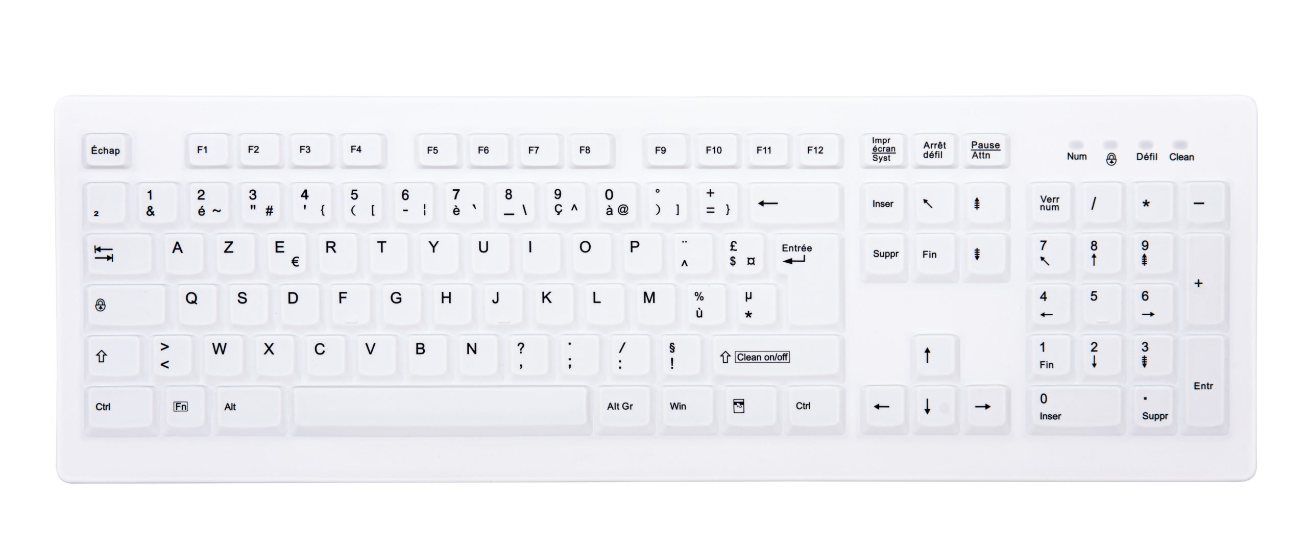Contour Design Active Key AK-C8100F-FU1-W/FR. Style de clavier: Droit. Technologie de connectivité: Sans fil, Interface de l'appareil: RF sans fil, Interrupteur à clé de clavier: Clavier à membrane, Disposition des touches du clavier: AZERTY, Nombre de touches du clavier: 105, Utilisation recommandée: Bureau. Couleur du produit: Blanc