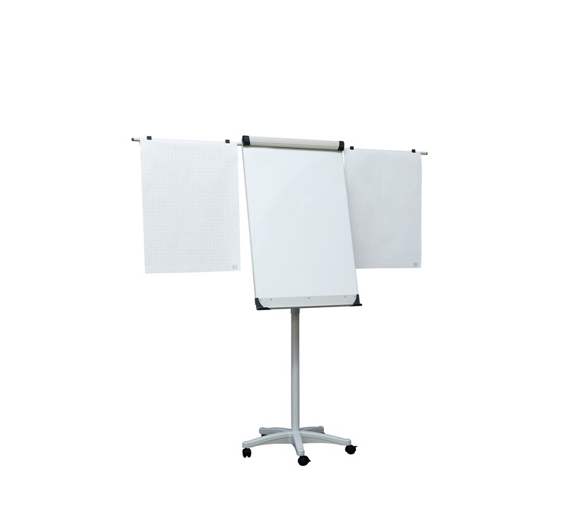- Potences latérales : Équipé de potences à pinces, il permet l'extension du tableau avec des blocs de papier pour des présentations encore plus dynamiques.