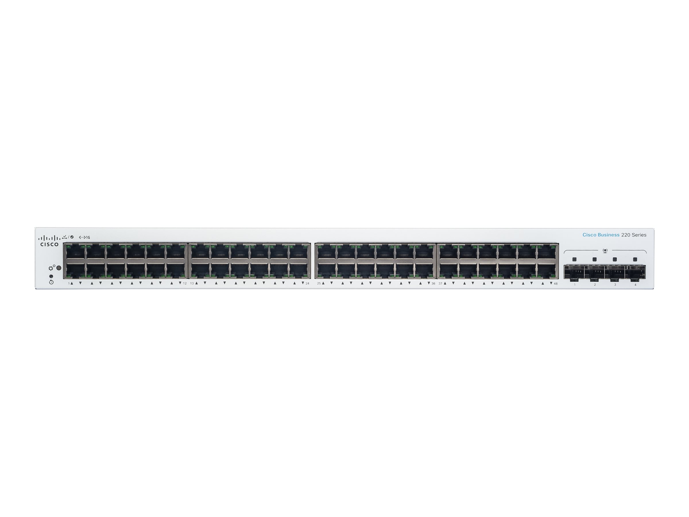 Cisco CBS220-48T-4G. Type de commutateur: Géré, Banc de commutateurs: L2. Type de port Ethernet RJ-45 de commutation de base: Gigabit Ethernet (10/100/1000), Quantité de ports Ethernet RJ-45 de commutation de base: 48. Répertoire MAC: 8192 entrées, Capacité de commutation: 104 Gbit/s. Standards réseau: IEEE 802.1D, IEEE 802.1s, IEEE 802.1w, IEEE 802.1x, IEEE 802.3, IEEE 802.3ab, IEEE 802.3ad, IEEE.... Grille de montage, Format: 1U