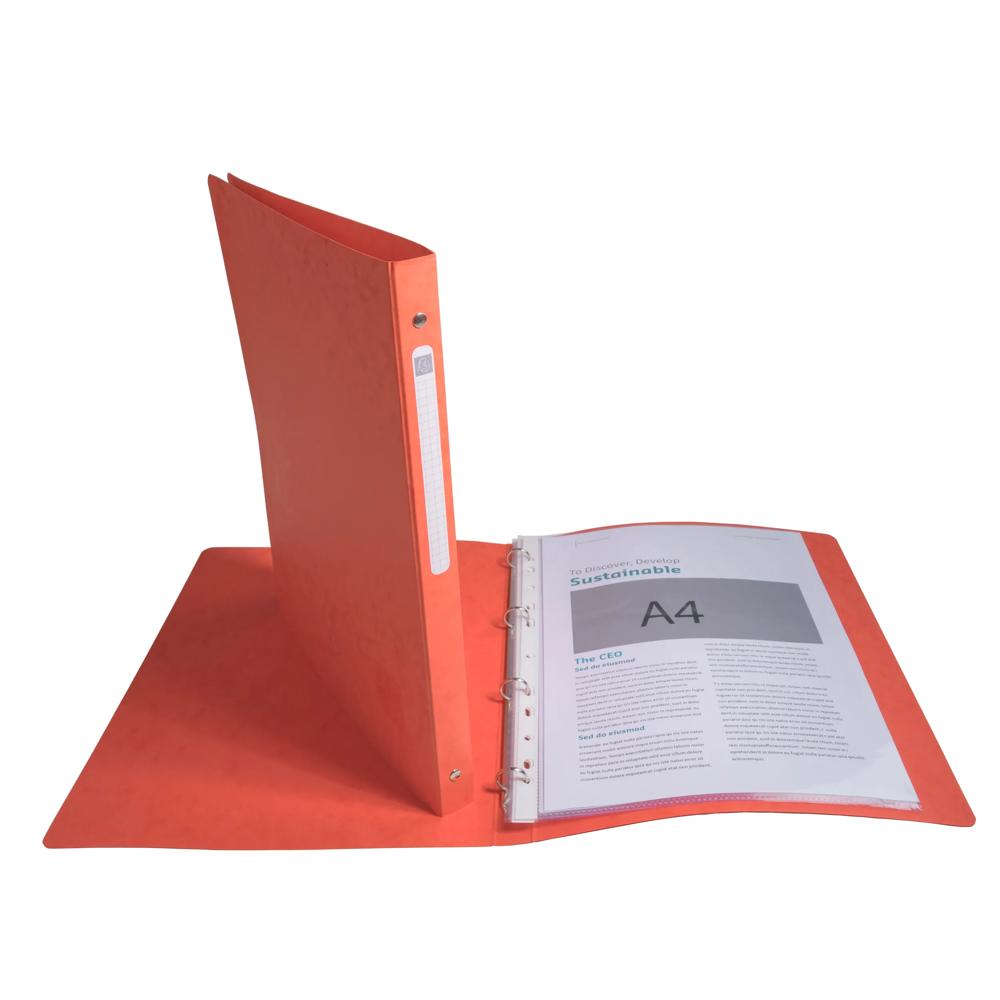 En véritable carte lustrée, un classeur solide, durable et adapté à un usage intensif. Format A4, adapté au classement de feuilles, pochettes perforées et intercalaires A4. Fabrication française.