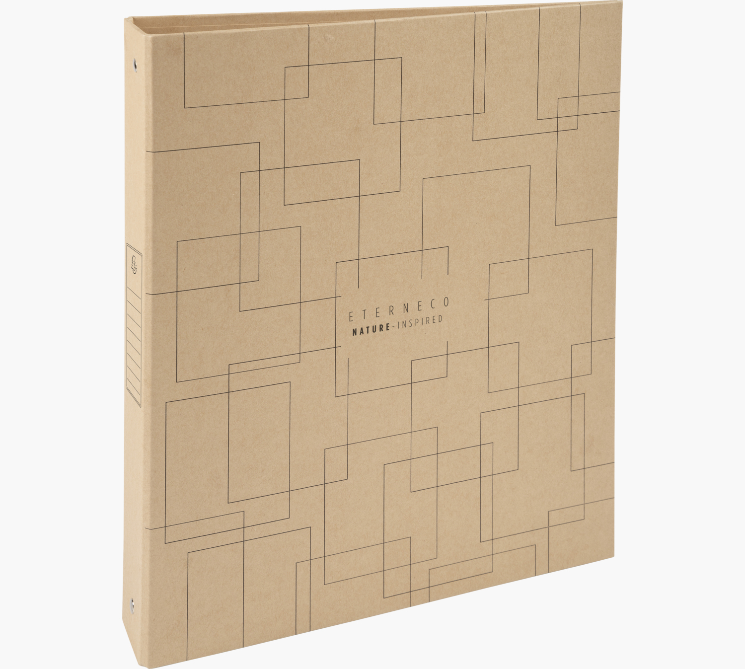 Couverture souple issue de matières végétales : pâte de bois et huile végétale. Conçue à partir de fibres neuves (pour plus de résistante) et de déchets papier collectés, afin de contribuer à l'économie circulaire. L'huile végétale permet l'étanchéité du classeur.