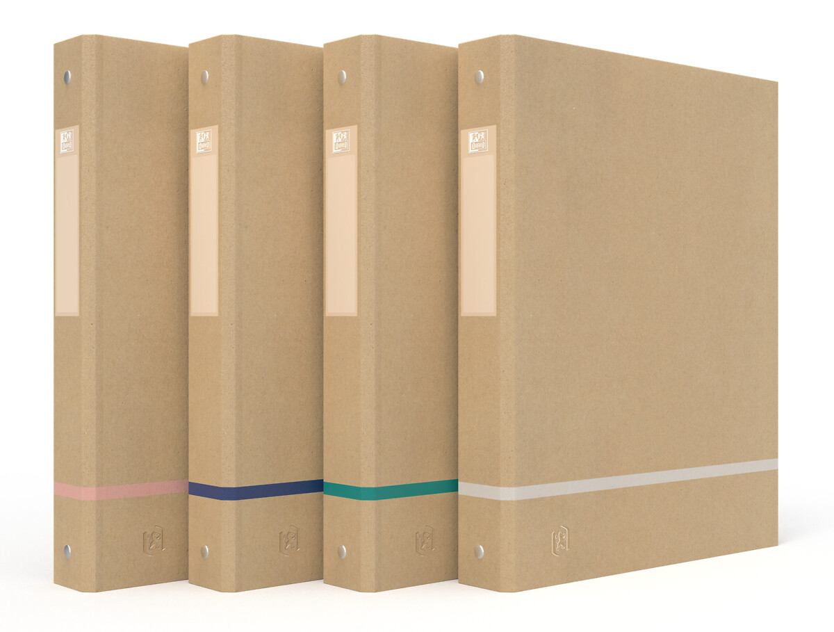 ENVIRONNEMENT : Le classeur est fabriqué à partir de 84% de carte kraft recyclée, sans colorant ni chlore. IDENTIFICATION : Une étiquette adhésive, discrète et épurée, positionnée sur la tranche du classeur, et un liseré coloré et esthétique facilitent l'organisation et l'identification des documents. CAPACITE : Le classeur à anneaux est doté d'un dos de 40mm qui offre une grande capacité de rangement jusqu'à 250 feuilles.