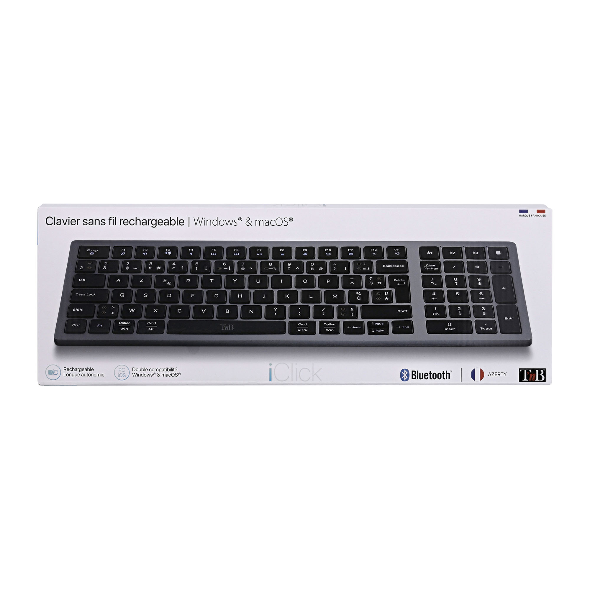 Sans fil plat avec touches de type chiclet (légèrement espacées, plates et arrondies, comme sur un clavier d'ordinateur portable).