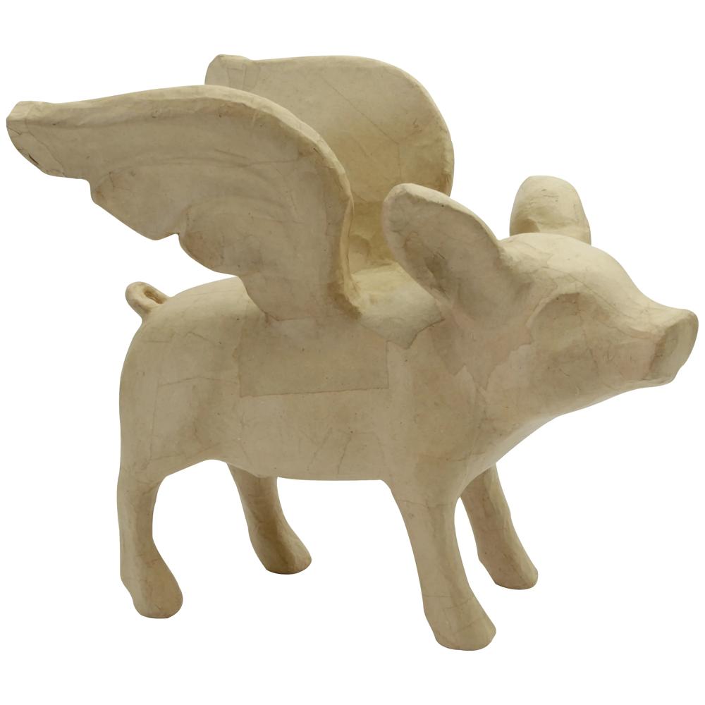 En papier mâché brun, ce support Décopatch est idéal pour être décoré selon vos envies. 1ère possibilité : le recouvrir de la peinture Gesso blanche (non fournie) avant de le peindre aux couleurs de votre choix. 2ème possibilité : le customiser avec le papier Décopatch et notre colle PaperPatch (non fournie). Rien de plus facile : déchirez ou découpez quelques morceaux de papier Décopatch d'environ 2x2 cm - Appliquez la colle sur le support. Déposez un morceau de papier sur la surface encollée et mettre une deuxième couche de colle dessus. Superposez les morceaux de papier pour recouvrir le support en mixant les couleurs et les motifs. 3ème possibilité : le recouvrir de colle PaperPatch (non fournie) puis appliquez nos paillettes Glit's par exemple (non fournies). A vous de jouer ! Un cochon volant de 42 cm de haut plein d'humour et de douceur. A exposer dans une pièce de vie ! Effet de surprise garanti ! Support Décopatch en papier mâché fabriqué à la main. Chaque produit est unique !
